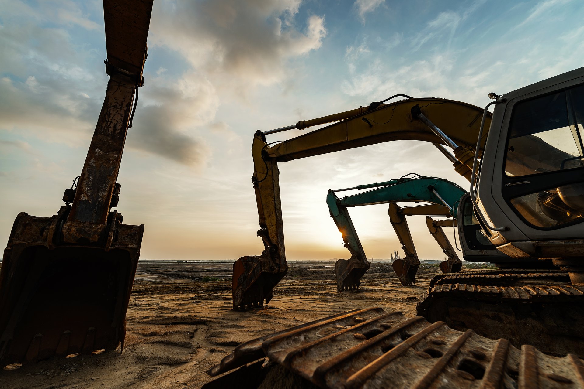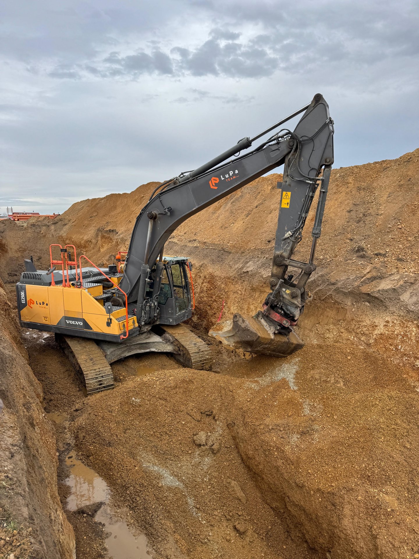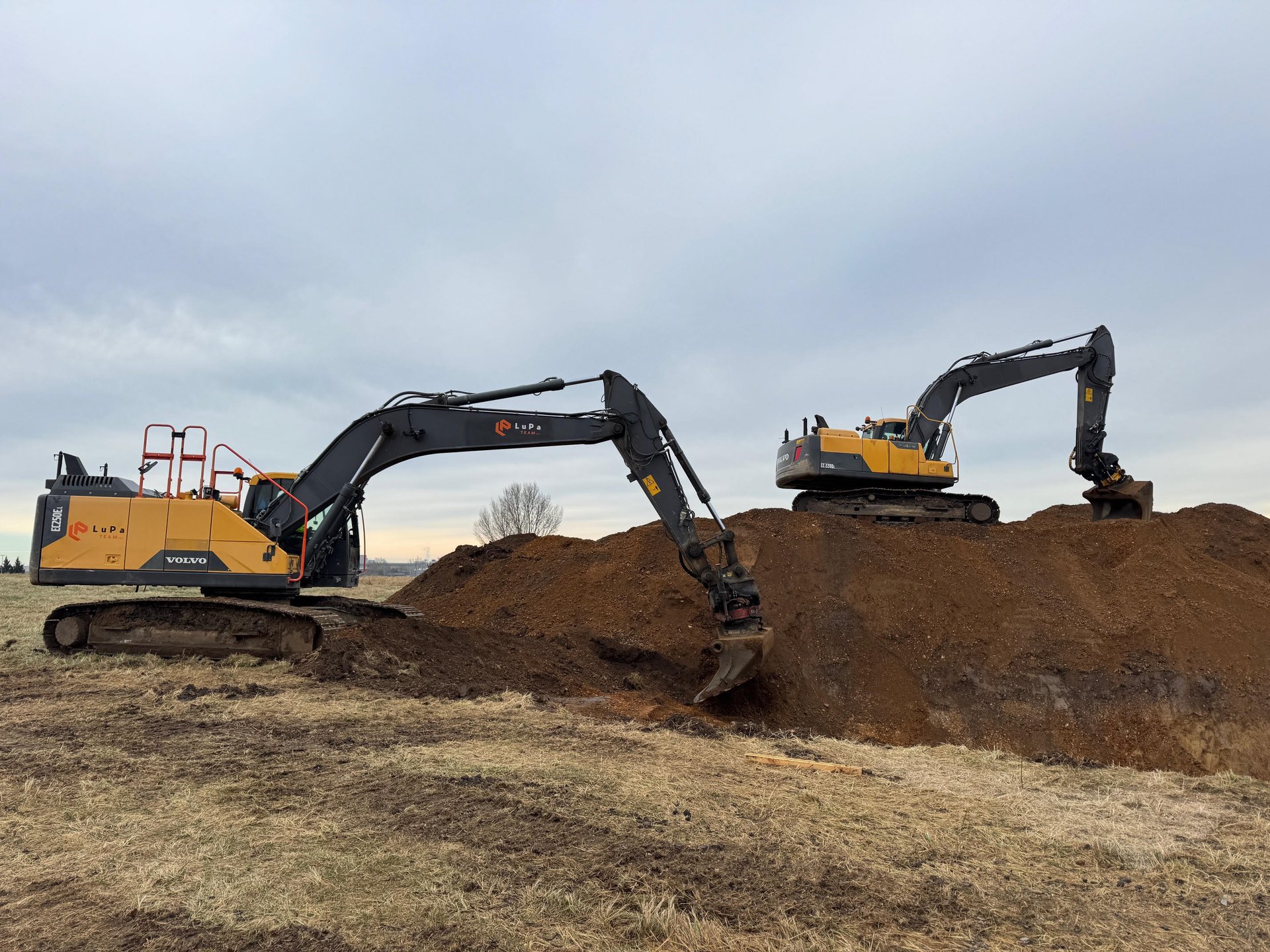 Pásové rýpadlá: Volvo EC250DL, Volvo EC 220EL, Takeuchi TB280FR, Sunward SWE40UD.